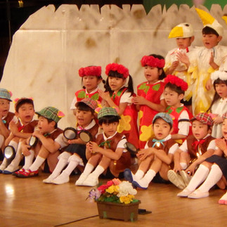年長児 音楽堂の舞台の上で演じるのも今年最後、自信に満ちて軽やかに踊ります。