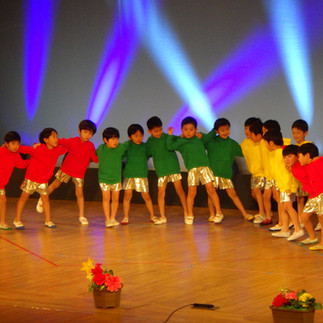 年少児は、初舞台!舞台慣れのために会場のお客さんと挨拶を交わし、照明さんには色とりどりのスポットライトをちょっぴり見せてもらい「わぁ~きれい・・・」その後はいつも通り元気にリズムを踊りました。