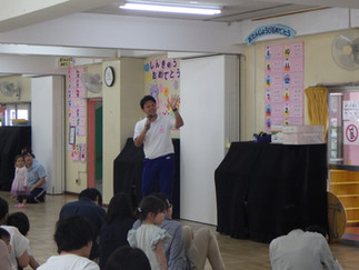 幼稚園に入園する前の子どもの育ちを考えながら、保育者がカリキュラムを立案しています。月に1回、年間で8回ですが、子ども達の吸収する力には、驚かされるものがあります。安心できるお父さんやお母さんと一緒に行う活動だからなのでしょうね。4月、子どもたちの大好きなアンパンマンの手遊びを通して先生たちの自己紹介・・・