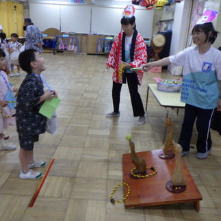 2番目の屋台はは「輪投げ!」理事長先生手作りの輪投げは20年前に作られた輪投げ遊びです。よ~くねらいをさだめて、さー投げましょう!