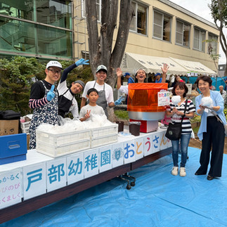 今年初めて、幼稚園の近隣にある「戸部コミュニティハウスまつり」に有志が参加しおとうさん交流を深めていました。